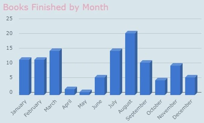 2020 is the only year in my life that I have read at least one book in every month. I hit a big reading slump in April and May, but I still managed to read something. My best month was August when I read 21 books. It was not quantity over quality, however. I gave a lot of books 5 stars in that month, and some of my favorite titles of the year came from there. This includes Radio Silence by Alice Oseman and And the Trees Crept In by Dawn Kurtagich.