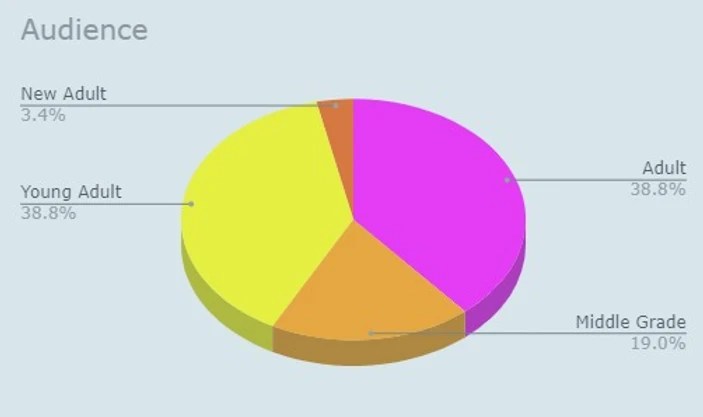 I had so much fun in 2020 exploring genres and subgenres I didn’t usually read. The graph I use is broken down by subgenre, but I thought it would be much less messy if I made this one more general. I am suprised to see that my biggest genre was fantasy. However, I read everything from speculative and magical realism to portal fantasy to epic fantasies like Sanderson’s Stormlight Archive.
