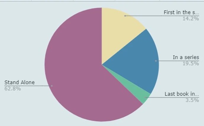 This next chart is all the books I read that were standalones vs books in a series. 71/116 of my books were standalones. I did break the series books down more specifically to first in the series, in a series, and last in the series just to call myself out. I started a total of 16 series and finished 4. I really need to get back into the habit of finishing series in 2021.