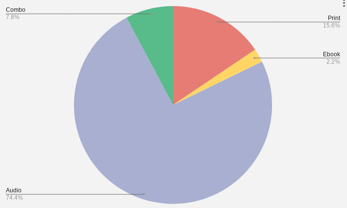This chart is always drastically different every year. I did listen to mostly audiobooks, which is normal for me.