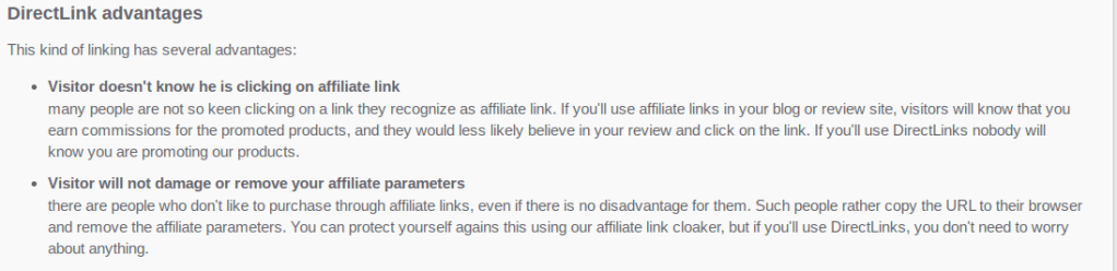 Now, my issue came when I made it to the Blackwell’s affiliate site. It’s something I think many people should be aware of, especially if you consume content on any platform where someone promotes Blackwells. I took a screenshot of their affiliate program page to show. This page was informing me about DirectLinks, which can be hidden, from what I learned.