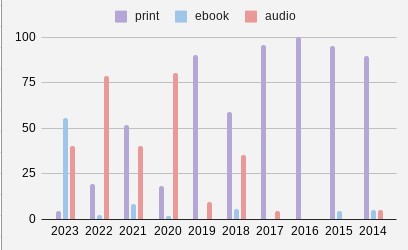 You guys can also see a big jump of borrowed in 2020 as I now have Libby. I also went to the library alot from 2020 to 2022. AND, in 2023 I got a Kindle Unlimited subscription. I am most definitely still the type of reader who borrows most the books I read.