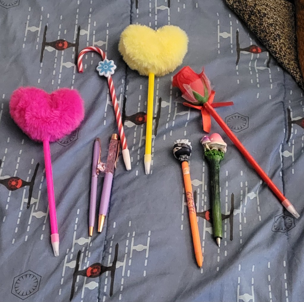 Here are just a few of the pens I’ve collected. Some of them no longer work, but I still like to keep them. I’m sure I can refill them down the line.