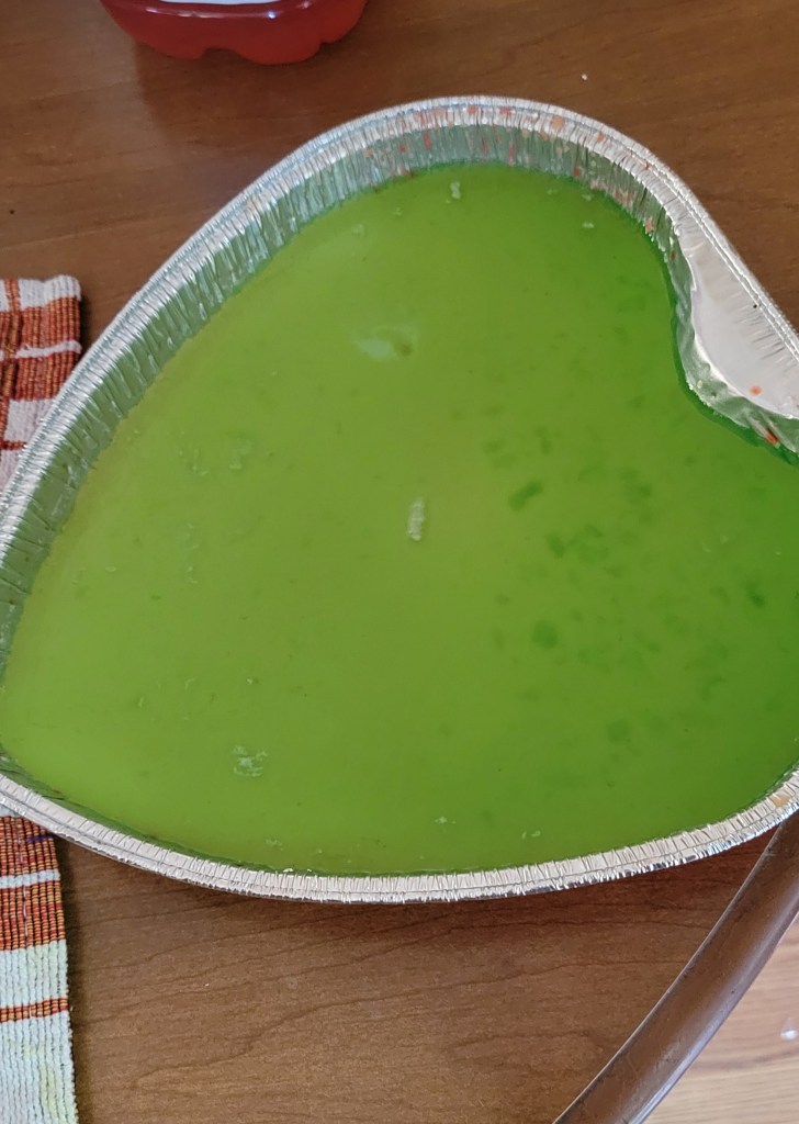 I spent an entire day the day before Valentine’s Day making this layered Jello for my boyfriend. It was something I’ve never done before, but it came out well. It was a layer of orange, lime, and cherry, with the white jello layered between. I’m not sure what this is called exactly.